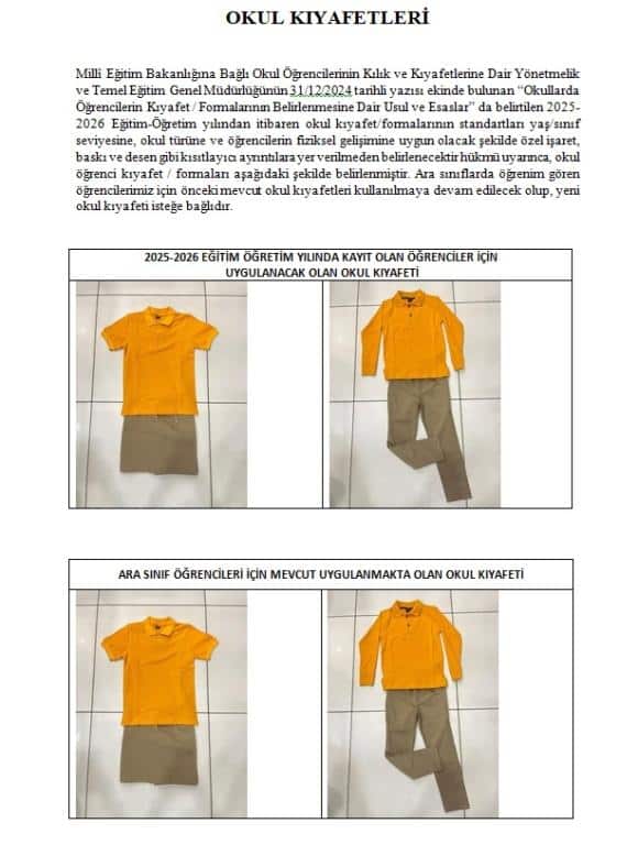 2025-2026 EğitimÖğretim yılı itibari ile okul kıyafetlerimiz bu şekildedir.